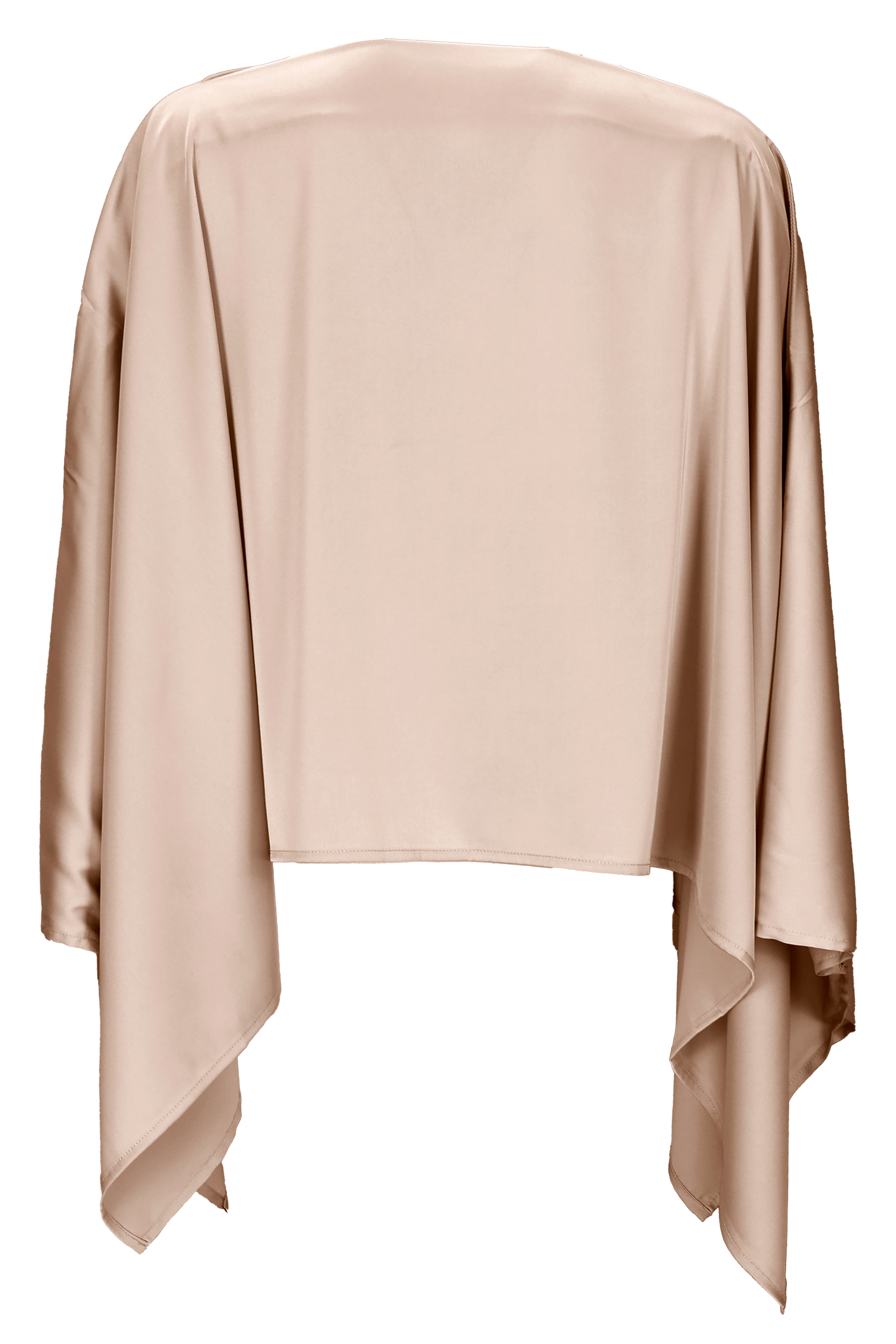 Bluza leptir kroja od nežnog satena sa ravnim, čamastim izrezom i opuštenim rukavima.